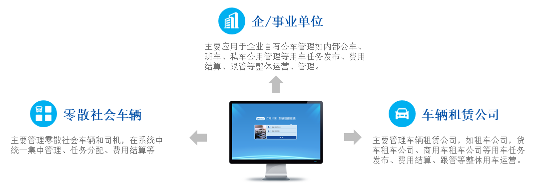 產(chǎn)品功能:實(shí)現(xiàn)用車(chē)管理規(guī)范化、信息化、智能化,達(dá)到陽(yáng)光用車(chē),降低車(chē)輛管理成本的目標(biāo),為企業(yè)公務(wù)車(chē)輛、委外車(chē)輛、私車(chē)公用三類用車(chē)管理模式提供信息化解決方案,解決車(chē)輛管理難題。