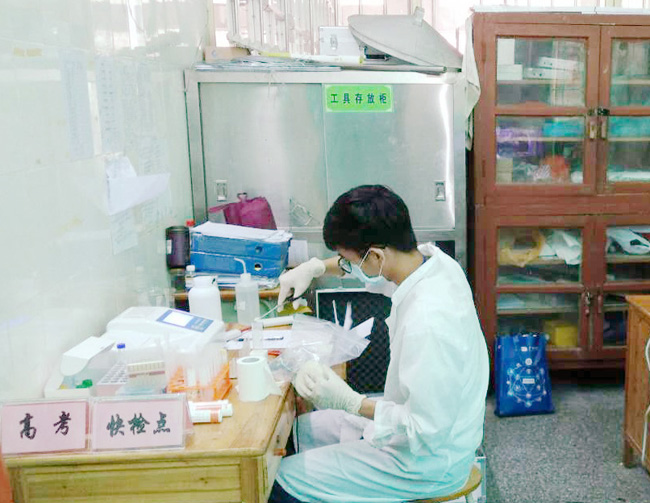廣州實(shí)驗(yàn)室技術(shù)人員在鶴山快檢點(diǎn)工作