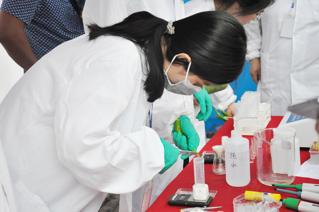 技術(shù)人員對(duì)蔬菜樣品進(jìn)行處理