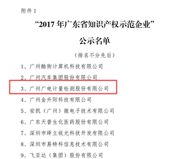 按照《廣東省知識(shí)產(chǎn)權(quán)示范企業(yè)和優(yōu)勢(shì)企業(yè)評(píng)定辦法》(粵知保協(xié)發(fā)字〔2017〕17號(hào)),經(jīng)企業(yè)自愿申請(qǐng)、各地市及順德區(qū)知識(shí)產(chǎn)權(quán)局擇優(yōu)推薦、專家評(píng)審并由“廣東省知識(shí)產(chǎn)權(quán)示范企業(yè)和優(yōu)勢(shì)企業(yè)評(píng)定工作指導(dǎo)委員會(huì)”合議,擬認(rèn)定“廣州廣電計(jì)量檢測(cè)股份有限公司”等20家企業(yè)為“2017年度廣東省知識(shí)產(chǎn)權(quán)示范企業(yè)”。