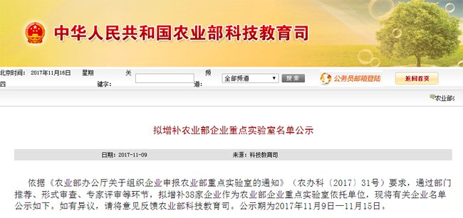 近日,農業(yè)部公示了“十三五”規(guī)劃期最新擬增補的38家農業(yè)部企業(yè)重點實驗室依托單位名單,廣電計量全資子公司——廣電計量檢測(湖南)有限公司作為第三方計量檢測機構成功入選。