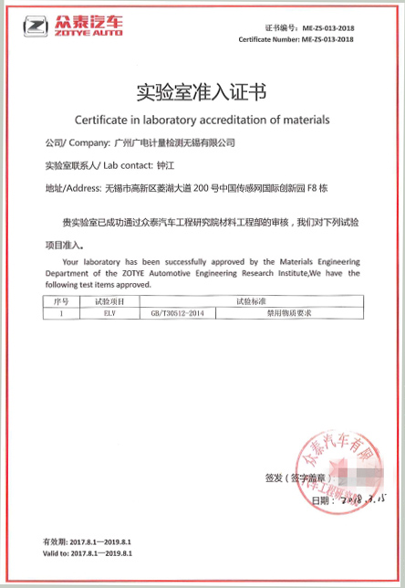 無錫子公司獲沃爾沃、眾泰汽車第三方實(shí)驗(yàn)室能力認(rèn)可