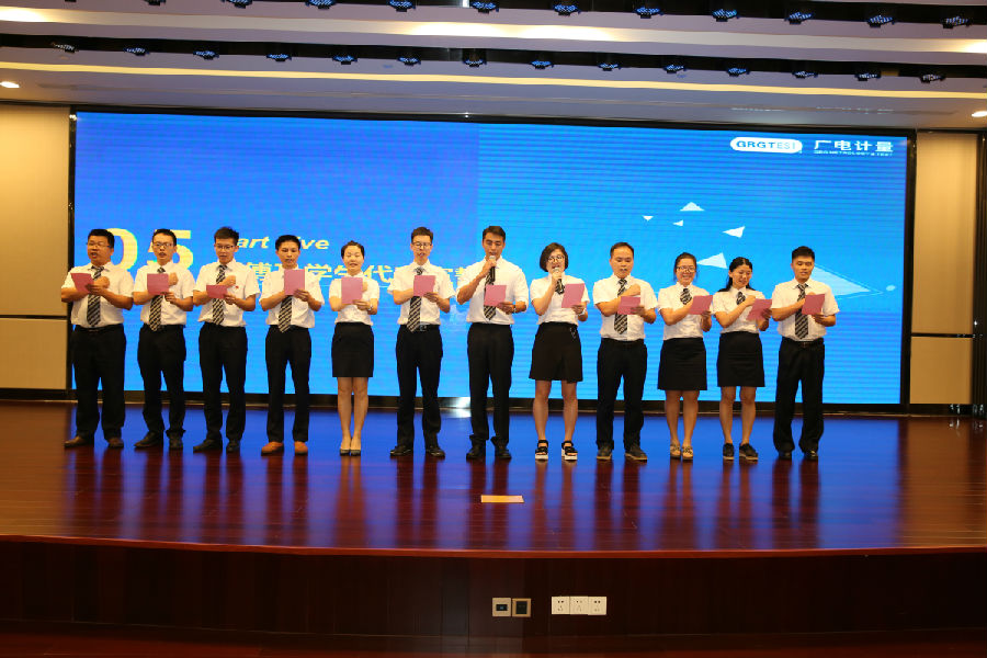 薪火相傳,生生不息。為幫助應屆生迅速成長勝任崗位需求,廣電計量“新生力訓練營”建立了完善的應屆生系統培養體系,為每一位應屆生安排了領路人——優秀師傅。會上,師傅代表與應屆生代表先后上臺莊嚴宣誓,共訴決心。