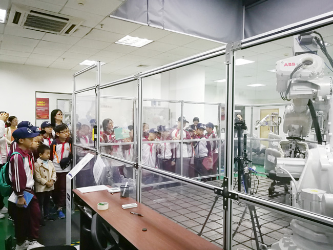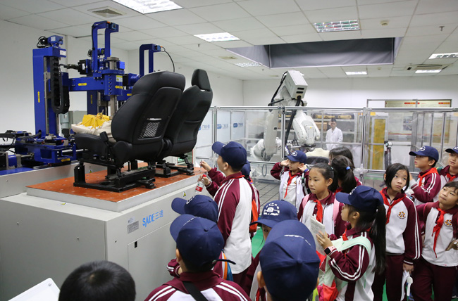 “原來可以用機(jī)器人來做測試!”“真酷!”在觀看汽車座椅測試時,孩子們對各種設(shè)備產(chǎn)生了濃厚的興趣,不時一邊提問一邊記錄。