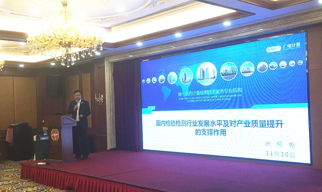 本次大會圍繞醫學裝備計量與質控前沿技術話題展開深入研討,行業技術專家針對醫學計量發展現狀、前沿醫學裝備技術、智能醫療等專題作學術報告,為提升醫學裝備質量控制、實現計量助推精準醫療提供了“技術養分”。其中,廣電計量資深技術專家許照乾以“國內第三方檢測發展現狀及對產業質量提升的支撐作用”為題作精彩分享,通過解析國內檢驗檢測行業發展總體情況,并結合廣電計量的技術服務案例,為與會醫療設備管理人員獻上了寶貴的借鑒經驗。