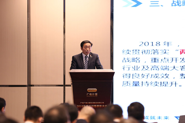 1月19日,廣電計(jì)量2018年度總結(jié)暨表彰大會(huì)召開,正式發(fā)布廣電計(jì)量2019年度經(jīng)營主題:全面提質(zhì)增效,筑牢發(fā)展根基;加強(qiáng)戰(zhàn)略布局,拓寬發(fā)展空間。會(huì)上,廣州無線電集團(tuán)黨委副書記、總經(jīng)理,廣電計(jì)量黨委書記、董事長黃躍珍作《新時(shí)代新使命新作為 開創(chuàng)廣電計(jì)量新篇章》的主題講話,勉勵(lì)全體廣電計(jì)量人做敢于擔(dān)當(dāng)?shù)膴^進(jìn)者,團(tuán)結(jié)一心開創(chuàng)新篇章;廣電計(jì)量黨委副書記、總經(jīng)理黃敦鵬代表公司經(jīng)營管理團(tuán)隊(duì)作《廣電計(jì)量2018年度經(jīng)營工作總結(jié)暨2019年度工作思路》的報(bào)告,系統(tǒng)總結(jié)2018年取得的經(jīng)營管理成果,并對(duì)2019年工作進(jìn)行部署。