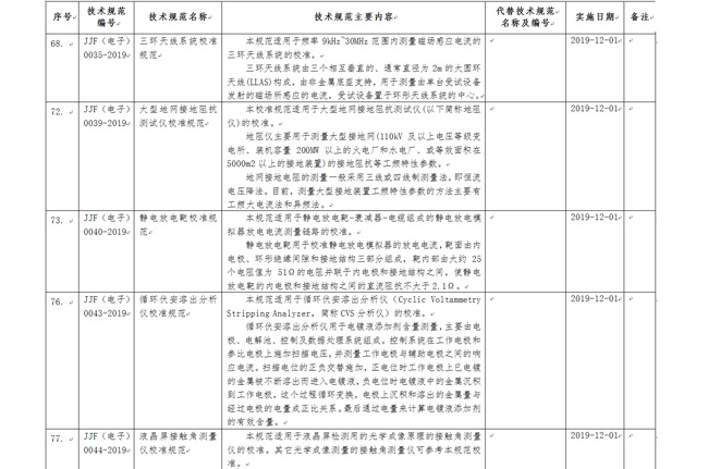 日前,國(guó)家工業(yè)和信息部發(fā)布公告,批準(zhǔn)了311項(xiàng)行業(yè)標(biāo)準(zhǔn)、1項(xiàng)汽車(chē)行業(yè)標(biāo)準(zhǔn)修改單、88項(xiàng)行業(yè)計(jì)量技術(shù)規(guī)范,并于2019年12月1日正式實(shí)施。其中,由廣電計(jì)量技術(shù)研究院技術(shù)專家團(tuán)隊(duì)主導(dǎo)編寫(xiě)的《三環(huán)天線系統(tǒng)校準(zhǔn)規(guī)范》、《大型地網(wǎng)接地阻抗測(cè)試儀校準(zhǔn)規(guī)范》、《靜電放電靶校準(zhǔn)規(guī)范》、《循環(huán)伏安溶出分析儀校準(zhǔn)規(guī)范》、《液晶屏接觸角測(cè)量?jī)x校準(zhǔn)規(guī)范》等5項(xiàng)電子行業(yè)校準(zhǔn)規(guī)范,以及參與編寫(xiě)的《電磁耦合鉗校準(zhǔn)規(guī)范》頒布實(shí)施。