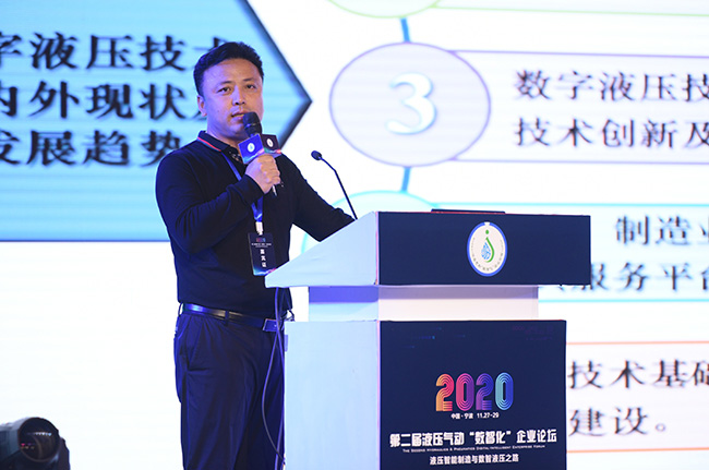 當(dāng)天,來(lái)自10余家知名企業(yè)、院校的高管及技術(shù)專家以專題報(bào)告的形式,圍繞液壓技術(shù)前沿話題,展示了IDP數(shù)字比例多路閥、智能直驅(qū)閥芯式液壓轉(zhuǎn)閥技術(shù)等創(chuàng)新產(chǎn)品及先進(jìn)技術(shù)。其中,廣電計(jì)量環(huán)境與可靠性工程研究所所長(zhǎng)趙可淪博士圍繞“聯(lián)合優(yōu)勢(shì)資源,共建數(shù)字液壓技術(shù)創(chuàng)新及產(chǎn)業(yè)技術(shù)基礎(chǔ)公共服務(wù)平臺(tái)”作主題報(bào)告,介紹了該項(xiàng)目的背景和建設(shè)方案,并提出了進(jìn)度計(jì)劃和未來(lái)展望。趙可淪介紹,該項(xiàng)目將圍繞高端工程機(jī)械數(shù)字液壓技術(shù),以建設(shè)平臺(tái)為目的,通過(guò)建立高端工程機(jī)械數(shù)字液壓元件(泵、閥、缸)相關(guān)標(biāo)準(zhǔn)體系,以及建立數(shù)字液壓各項(xiàng)功能的試驗(yàn)檢測(cè)能力,進(jìn)而提供第三方檢測(cè)服務(wù),為數(shù)字液壓技術(shù)在高端工程機(jī)械行業(yè)中的應(yīng)用提供平臺(tái)支撐,建立與完善支撐行業(yè)發(fā)展的產(chǎn)業(yè)技術(shù)基礎(chǔ)公共服務(wù)能力,加快推進(jìn)數(shù)字液壓技術(shù)在高端工程機(jī)械、航空航天等關(guān)鍵行業(yè)的應(yīng)用。