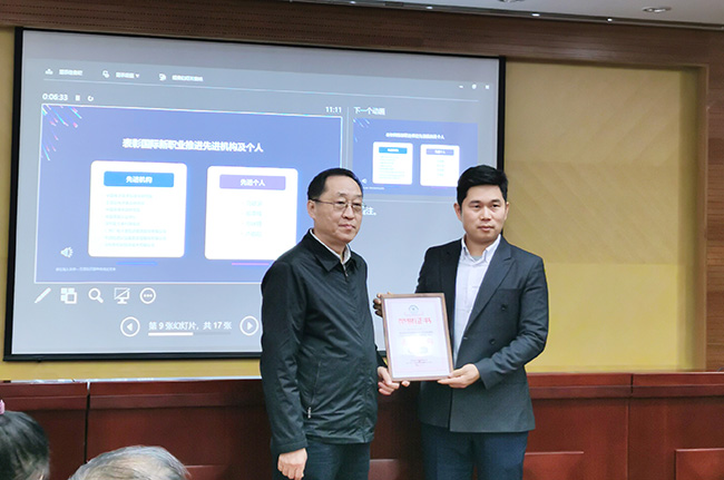 會上,中國電子節能技術協會黃建忠理事長為廣電計量頒發了國家新職業“電氣電子產品環保檢測員 L”工作組“先進機構”榮譽證書,以此表彰廣電計量在國家新職業“電氣電子產品環保檢測員 L”工作組工作推進過程中的突出貢獻。