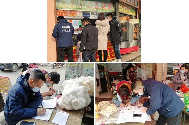 在農貿市場、食品零售店,也有他們與檔主耐心溝通,認真記錄的忙碌身影
