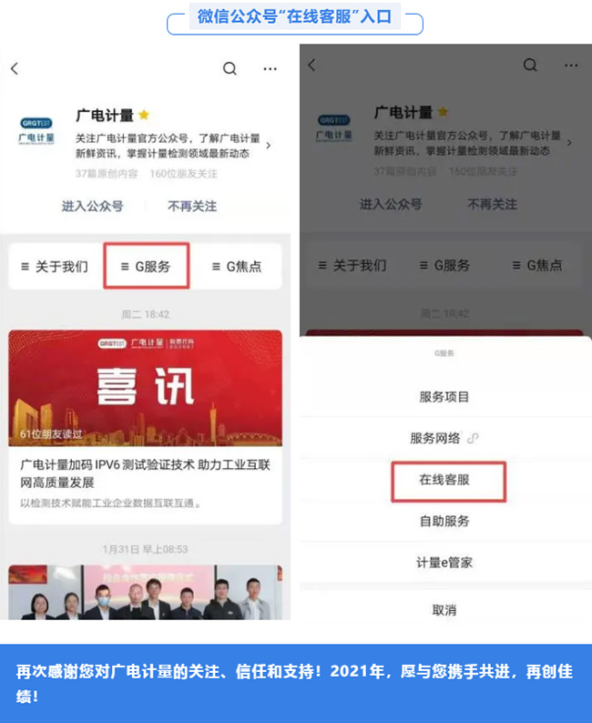 2、進(jìn)一步優(yōu)化客戶意見反饋體系。如果您在服務(wù)過程中有任何意見或疑問,您可通過官方電話、官方郵箱、官網(wǎng)及微信公眾號“在線客服”等各個渠道進(jìn)行反饋,廣電計量將100%回復(fù)處理,切實保護(hù)您的利益。您的每一條意見和建議,都是我們不斷改進(jìn)、提升客戶服務(wù)體驗的有益指導(dǎo)。