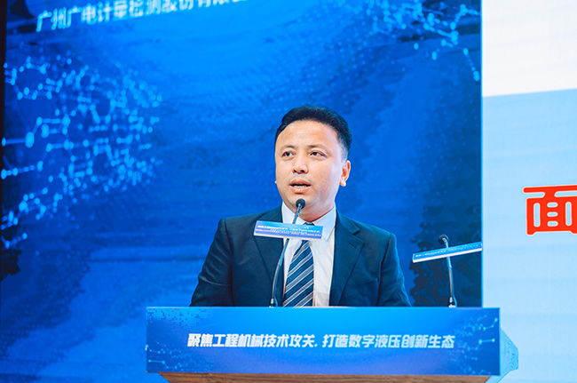 黃敦鵬作為承辦方代表出席并講話。他介紹,廣電計(jì)量依托領(lǐng)先的液壓元件試驗(yàn)檢測(cè)技術(shù)能力、全國(guó)化實(shí)驗(yàn)室服務(wù)網(wǎng)絡(luò)以及信息化技術(shù)管理能力,正積極推動(dòng)液氣數(shù)智化產(chǎn)業(yè)聯(lián)盟的建設(shè),從而構(gòu)建數(shù)字液壓產(chǎn)業(yè)化和標(biāo)準(zhǔn)化發(fā)展能力,為數(shù)字液壓在高端工程機(jī)械行業(yè)中的應(yīng)用提供平臺(tái)支撐。黃敦鵬表示,構(gòu)建數(shù)字液壓技術(shù)生態(tài)標(biāo)準(zhǔn)體系是行業(yè)發(fā)展迫切需要,希望以本次會(huì)議為契機(jī),搭建一個(gè)數(shù)字液壓技術(shù)行業(yè)的交流平臺(tái),共同攻克這個(gè)典型的“卡脖子”技術(shù),同時(shí)通過(guò)建立液壓行業(yè)標(biāo)準(zhǔn),完善高端裝備制造技術(shù)配套,進(jìn)一步鞏固和擴(kuò)大湖南省工程機(jī)械產(chǎn)業(yè)的國(guó)際優(yōu)勢(shì),進(jìn)一步推動(dòng)我國(guó)工程機(jī)械產(chǎn)業(yè)升級(jí),助力“中國(guó)制造”逐步邁向“中國(guó)先進(jìn)智造”。