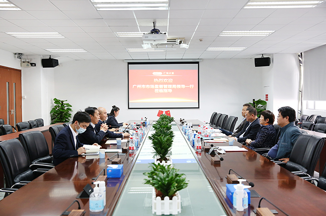 12月10日上午,廣州市市場監督管理局袁玲副局長一行廣州廣電計量檢測股份有限公司(簡稱廣電計量)開展調研。廣州市市場監督管理局計量處、認證處有關負責同志;廣電計量黨委書記、總經理黃敦鵬,副總經理黃沃文陪同調研。