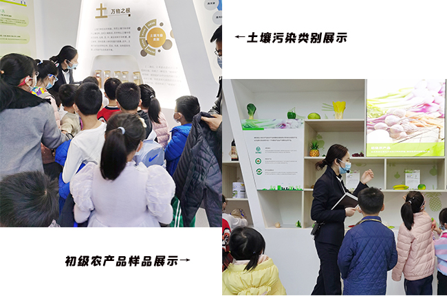 活動第一站,學生及家長走進宣傳教育展廳,通過觀看教育短片,以及廢水、農產品、加工食品、食品添加劑等實驗室樣品展示,在宣講員介紹中深入了解環境保護及食品安全的重要性。