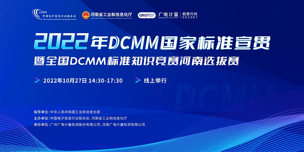 近日,由工業和信息化部指導,河南省工業和信息化廳主辦,廣州廣電計量檢測股份有限公司、河南廣電計量檢測有限公司承辦的“2022年DCMM國家標準宣貫會暨全國DCMM標準知識競賽河南省選拔賽”在線上順利舉辦。活動旨在進一步推動河南省DCMM貫標評估工作,夯實數字經濟發展基礎,增強企業數據管理意識及數據管理能力。