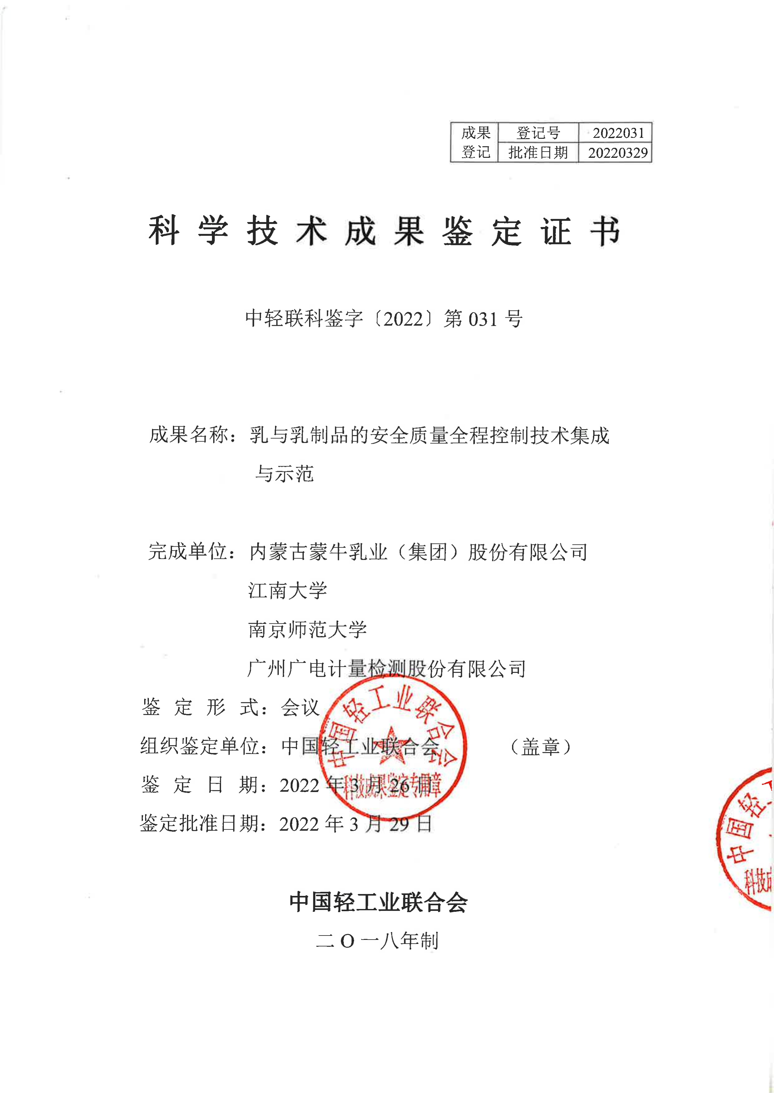 近日,中國輕工業聯合會組織有關專家召開了“十三五”重點研發計劃項目技術成果鑒定會。廣電計量參與的《乳與乳制品加工靶向物質危害控制技術集成應用示范》項目(以下簡稱“項目”)順利通過成果鑒定。專家組通過聽取研究團隊匯報、審閱相關資料、質詢討論等環節,一致認為項目整體技術達到了國際先進水平,具備廣闊的推廣與應用前景。