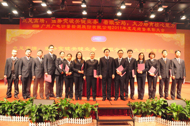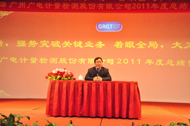 2012年元月7日下午,廣州廣電計量檢測股份有限公司2011年度經(jīng)營工作總結及表彰大會在陽光酒店隆重舉行。GRGT黃敦鵬總經(jīng)理首先代表公司就2011年度經(jīng)營情況和2012年經(jīng)營思路做總結報告。