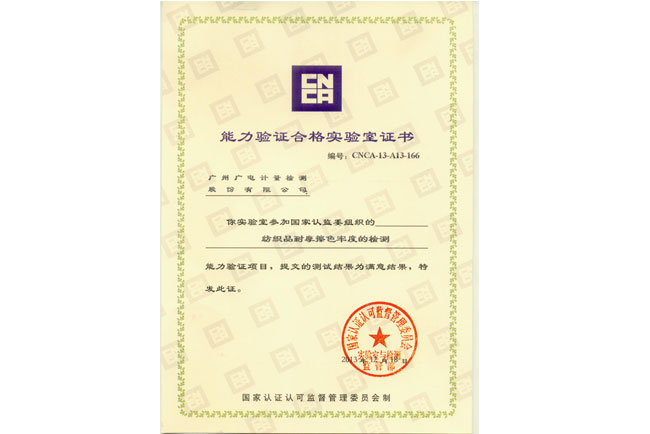 能力驗(yàn)證的滿意結(jié)果證明了我司在紡織品及電子電器產(chǎn)品檢測(cè)能力滿足國(guó)家相關(guān)標(biāo)準(zhǔn)要求,具備了良好的技術(shù)底蘊(yùn)和完善的質(zhì)量保障體系,能夠確保檢測(cè)結(jié)果的質(zhì)量。