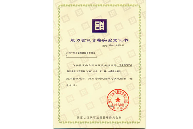 CNCA-13-B21 | 電子電氣產(chǎn)品限用物質(zhì)—工程塑料(ABS)中鉛、汞、鎘、六價(jià)鉻的測(cè)定 | Pb、Hg、Cd、Cr6+ | 滿意 |