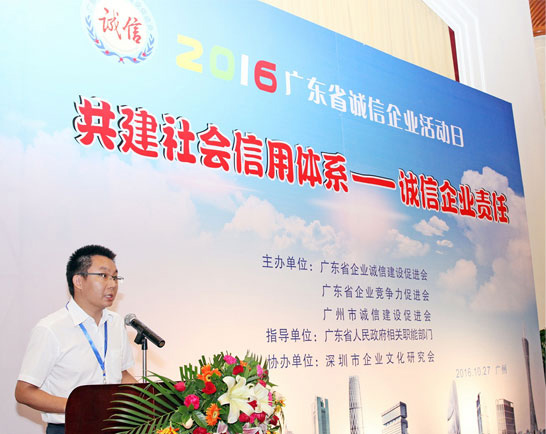 在2016廣東省誠信企業活動日大會上,廣東省企業誠信建設促進會根據國家標準GB/T31950-2015《企業誠信管理體系》、GB/T 23794-2015《企業信用評價指標》對會員企業進行了對標評估評價,發布了深圳市水務(集團)有限公司、廣州廣電計量檢測股份有限公司等9家單位獲得2016年度廣東省優秀誠信企業,46家獲得2016年度廣東省誠信企業,58家獲得2016年第三季度廣東省企業信用等級A級以上企業。