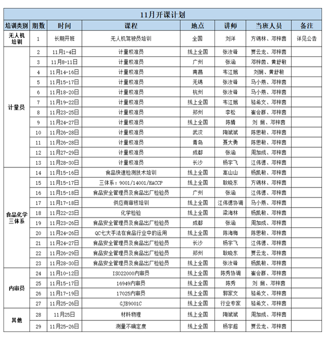 本月培訓(xùn)課程涵蓋計(jì)量校準(zhǔn)員類