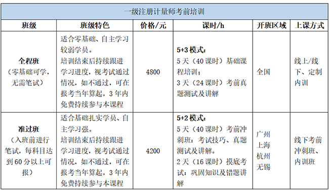 5、培訓保障:參加培訓后如未通過2022年的考試,可持本人成績單免費參加2023年注冊計量師考前輔導班。