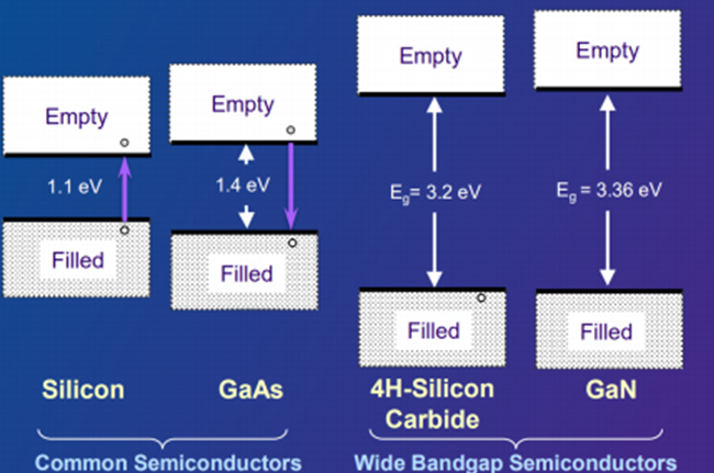 圖:各種半導(dǎo)體禁帶寬度示意圖