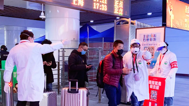 疫情發生后,靜安區委第一時間成立鐵路上海站疫情防控現場指揮部,在鐵路上海站東南、西南、西北三個出口,有三個臨時黨支部共同駐守這道“鐵路大門”。第一道查驗,宣傳引導,補充登記,后臺登記,保障組,信息組……臨時團隊在高效運轉, 2月4日上崗以來,這支隊伍6小時一個班次,每天4班倒,無間歇“守大門”。