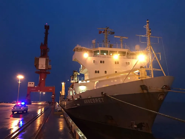 3月3日傍晚,安提瓜和巴布達籍“安內格特”輪順利靠泊南港碼頭,與3月2日靠港的中國香港籍“天福”輪形成運力共同運載54片滬產風力發電機葉片銷往南美和歐洲等國。這是上海吹響復工號角后南港碼頭迎來的首波作業高峰。