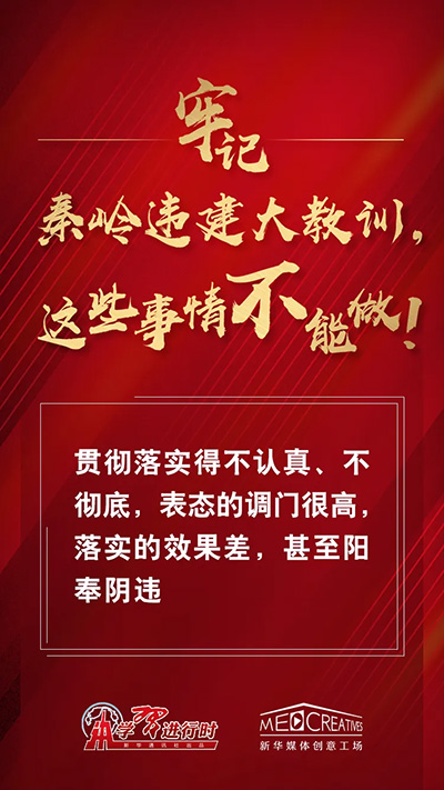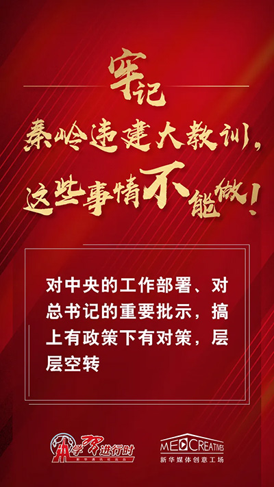 秦嶺違建的“大教訓”深刻警示,同以習近平同志為核心的黨中央保持高度一致,堅定“四個意識”、做到“兩個維護”,不是空喊口號而是重在落實、令行禁止,在貫徹執行中央決策部署上不打折扣、不搞變通。