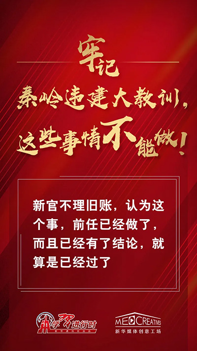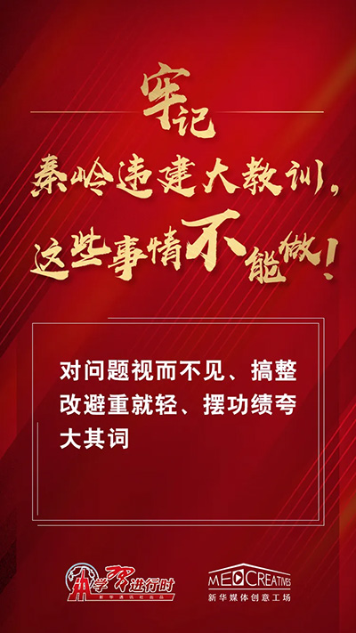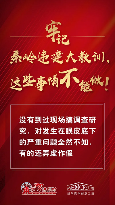 2018年7月,習近平總書記對秦嶺違建別墅第6次作出批示:“首先從政治紀律查起,徹底查處整而未治、陽奉陰違、禁而不絕的問題。”隨后,黨中央派出專項整治工作組入駐陜西,督促整改。2018年7月后,位于秦嶺北麓西安境內的1100多棟違建別墅被依法拆除,多名領導干部因違紀違法被立案調查。