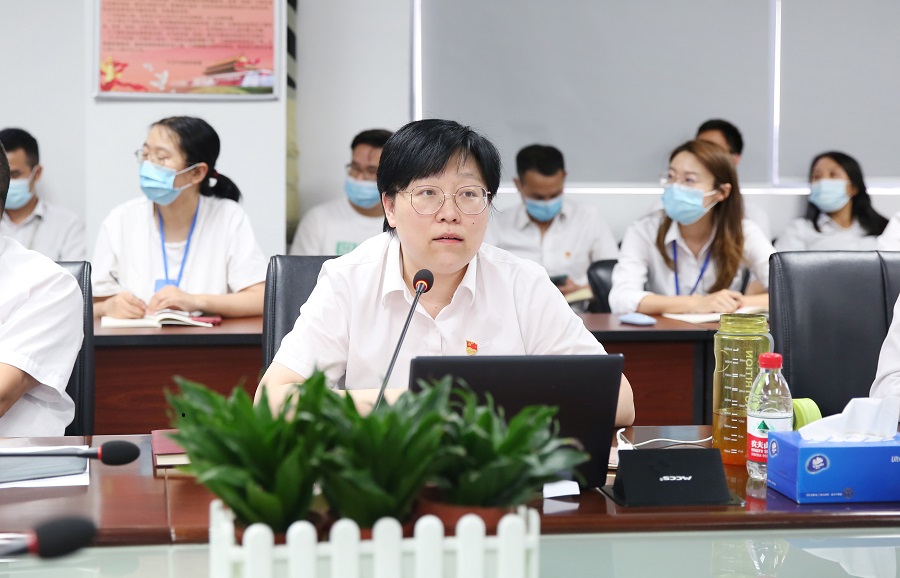 接著,對照廣電計量“黨員先進性”標準,湖南子公司黨支部盧光磊、南寧子公司黨支部馮玉玲、河南子公司黨支部劉新分別分享了所在黨支部的田光超、肖艷、高帥鵬三位黨員先進事跡。田光超同志主張“用技術黏住客戶”,帶領塑膠跑道業務線的業務人員攻堅克難,在今年疫情的影響下實現了業績逆勢增長,多次協助市場人員拿下大單;肖艷同志帶領團隊苦練內功,加班加點擴項,在今年疫情影響,人員極度缺乏的情況下,保質保量完成業務保障,報告及時率100%,朝著超額完成產值的目標奔去;高帥鵬同志堅持“技術先行”的工作思路,破解準查新到資料檢索、從設備篩選到設備調試、從方法建立到數據審核、從樣品分析到數據報告等各環節難題,成功將技術轉化為強大的市場占有率。