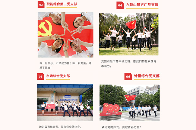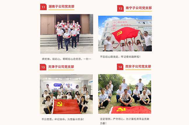 在中國共產黨百年華誕來臨之際,廣電計量黨委組織開展“我與黨旗合影,向黨說句心里話”主題活動,向黨的生日獻禮。一張張合影,一句句質樸的話語,記錄和表達了廣電計量全體黨員愛黨、頌黨的真情實感。一個支部就是一個堡壘,一名黨員就是一面旗幟!