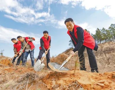 江西廬山市蓼南鄉(xiāng)的黨員干部正在種植濕地松。韓俊烜攝(人民視覺)