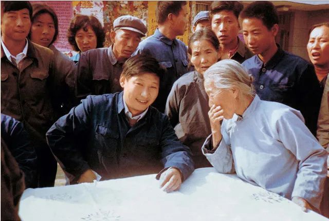 1983年,時任河北正定縣委書記習近平臨時在大街上擺桌子聽取老百姓意見。(來源:新華社)