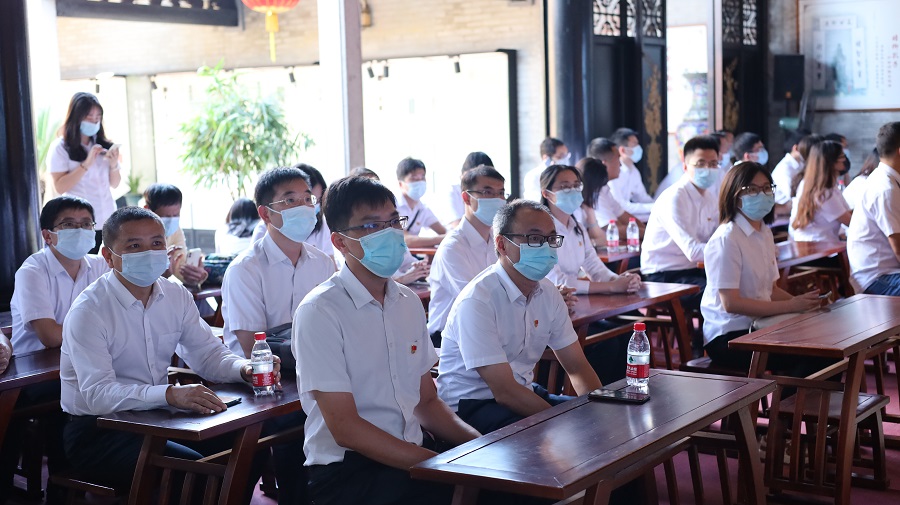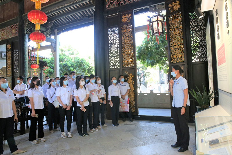 余蔭山房是嶺南四大園林之一,其原主人——番禺南村鄔氏家族傳承八百余年,家風清廉,賢人輩出。在學習教育現場,黨員們參觀了“百年鄔氏百年堂,清正家風永流芳”家風家訓廉潔文化主題展覽、家風學堂、勤廉廊、勤廉書吧等。