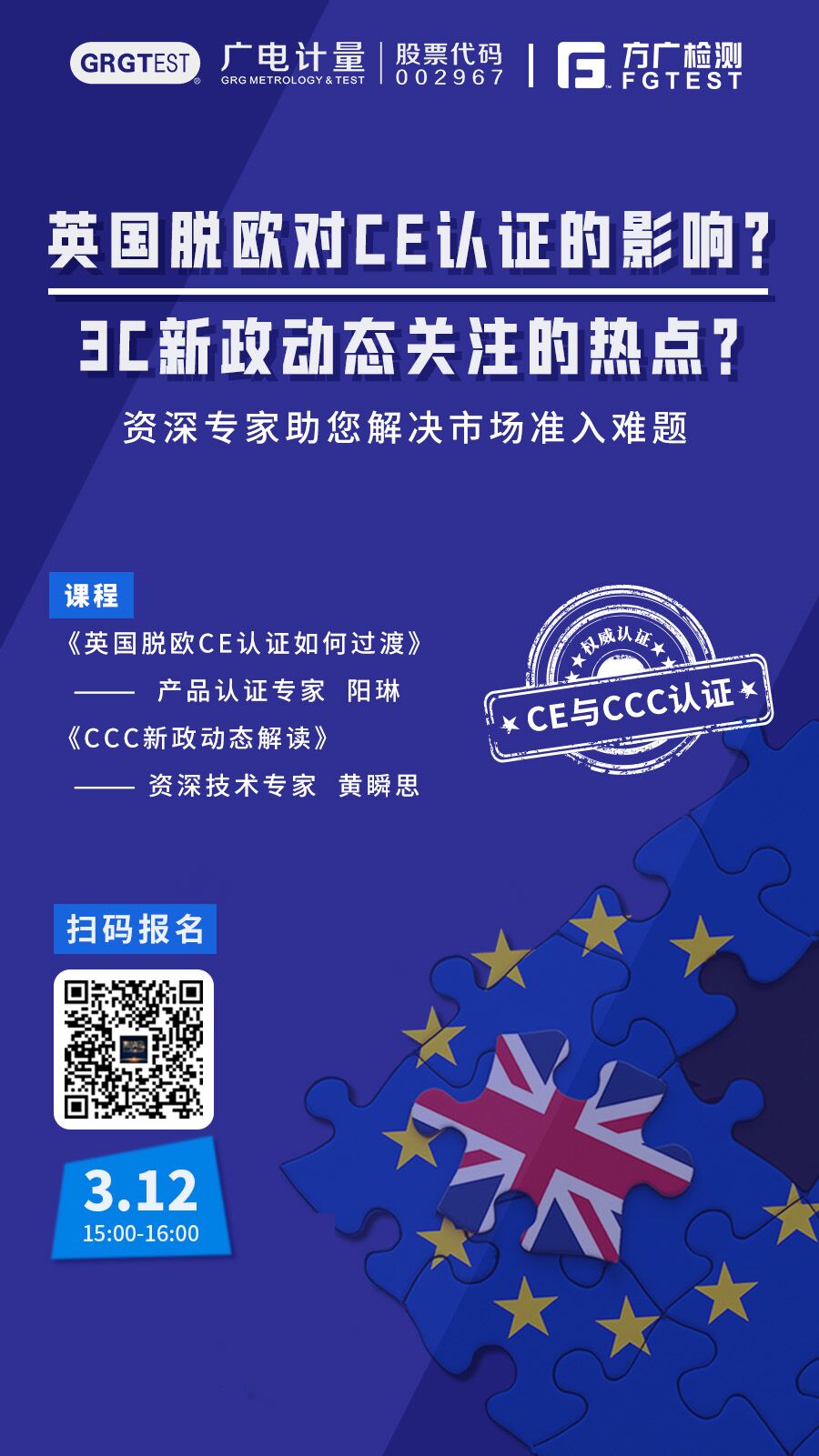 針對目前CCC最新政策,企業該如何進行應對,使產品符合最新標準,同時CCC推出的強制性認證產品自我聲明和CE的概念有否相同?方圓廣電檢驗檢測股份有限公司技術專家將為企業開展認證專場線上直播公開課,為企業快速解決市場準入相關問題,解答企業疑問。
